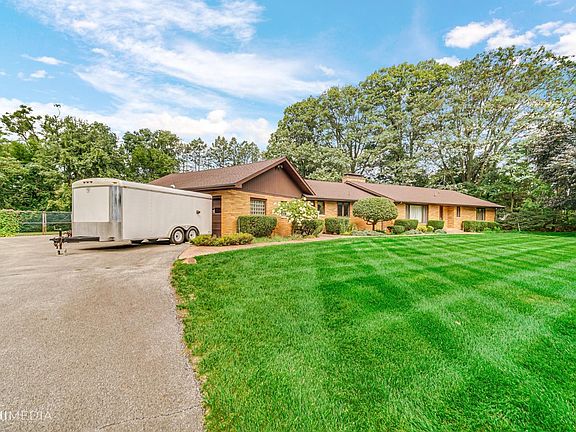 LOCATION, LOCATION This solid all brick ranch home sits peacefully in the back corner of this quiet subdivision. Large 1.3 acre yard, 2800 square ft of living space on the main floor, spacious enclosed screen porch walks out to the crystal blue in ground pool, 2 car attached garage, main floor laundry room with additional corian counter tops and oak cabinets with sink, 1/2 bath off of hallway leading to the back screen porch and pool area, plenty of closets through out the home, large eat in kitchen w/ corian counter tops, solid oak cabinets center island, double ovens built in, indirect lightning, formal dining room opens to large living room w/fireplace and gorgeous views of the pool area and back yard, off the front of home there is a main floor family room w/ fireplace and plenty of built in shelves, 3 bedrooms, full main bathroom w/ceramic tiled floor, 3/4 bath is accessible from both the primary bedroom and hallway has ceramic tiled floor and pocket door. Home being sold AS IS