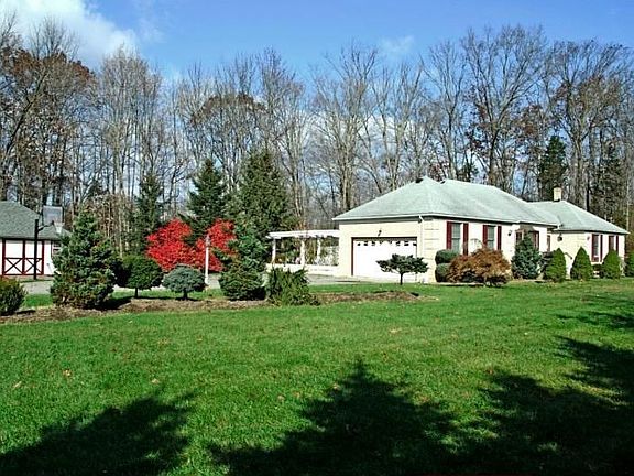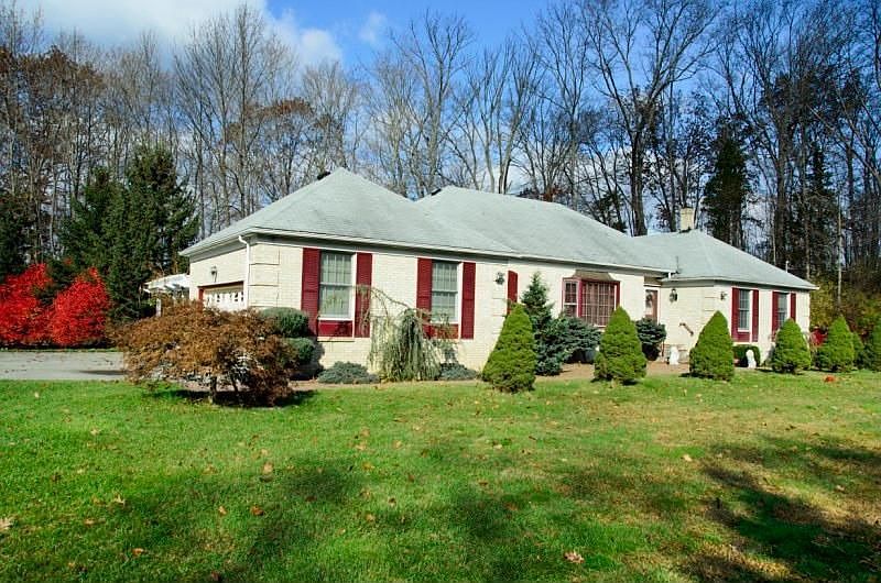 Spacious Ranch w/2nd kitchen downstairs in finished basement w/office, family room, bedroom, dining area. Hardwood floors throughout main level. Central Air, level 2.48 Acres Stately brickfront ranch on level 2.48 acres. Main floor features gleaming hardwood floors throughout living room, dining room, family room, and three bedrooms. Eat-in kitchen with ceramic tile floor, oak cabinets. Family room with sliders to deck overlooking private backyard. Master bedroom has cedar walk-in closet and neutral master bathroom. Two additional first-floor bedrooms with double closets and master bathroom with full tub. Half bath features pedestal sink and ceramic tile flooring. Finished basement features fully-equipped eat-in kitchen, full bath, bedroom, office, and den.