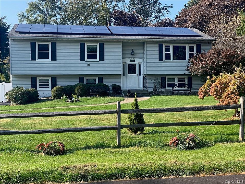 This Updated Ranch is located minutes from the heart & village of Pawling, NY. Last Home on Cul-de-sac/ .59 acres with a level back yard. This home has a beautiful kitchen with Chestnut Black Oak Glaze Cabinets flanked with granite & marble tile. A dining room is off the kitchen with a living area & sunroom with additional heat from the pellet stove. The main level has 3 beds & 2 baths, the lower level has 2 beds 2 baths. A multi-purpose/bar area with a room for an office and/or bedroom. Also, located on this level includes; Laundry, essentials, i.e. boiler and water filtration. Perfect home for extended family members. Taxes do not include STAR discount. Solar Runs the entire household.