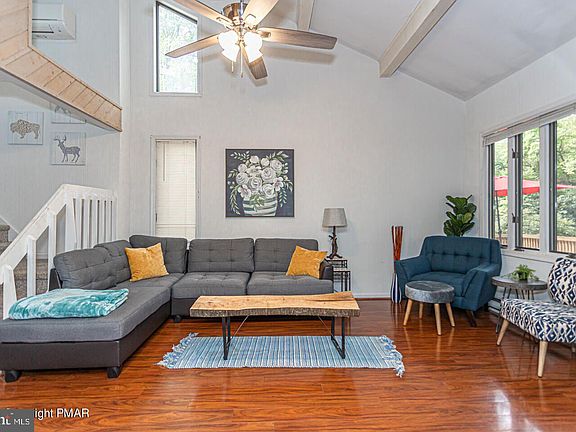 Back on the market due to buyer financing! Immaculate end-unit vacation home is nestled in desirable Harmony Ridge across from spectacular Big Boulder ski slopes! New Roof & Central Air! HOA includes exterior building maintenance, outdoor pool, tennis courts, clubhouse, basketball court, & garbage drop-off. The hardwood foyer opens to the dramatic 2-story family room, complete with cathedral, vaulted ceilings, gleaming hardwood floors, custom windows, and upgraded ceiling fan. Cozy up to your floor-to-ceiling stone fireplace on a cold winter night after a long day of skiing, snowtubing, and snowmobiling. The remodeled kitchen boasts granite countertops & island, recessed lighting, ceramic tile floors, tile backsplash & leads to the dining room with bright sliders that open to an expansive wrap-around deck, with lush backyard.Convenient main floor bedroom and full bath! The master suite has vaulted ceilings, plush carpeting, large closet, and a luxurious master bath with Jacuzzi tub, separate shower, & recessed lighting. The third bedroom is spacious, with soft carpets, large closet, & custom paint. Don't forget the huge, walk-out basement with plenty of storage! Check out Split Rock's Indoor Waterpark, Redemption Arcade, Cosmic Bowling,& Movie Theater. Enjoy Jack Frost/Big Boulder ski resort as well as plenty of restaurants like Shenanigans, Boulder View Tavern, Nick's Lake House, Piggy's, Louie's Prime...the list is endless!