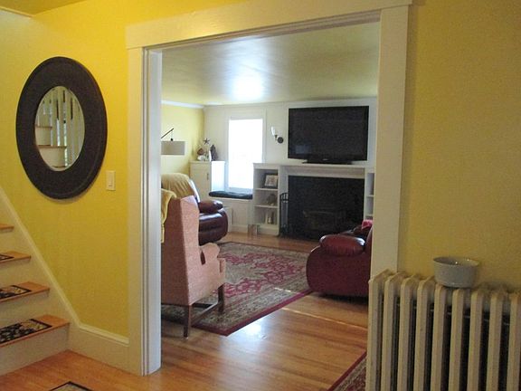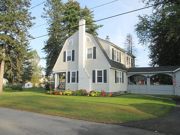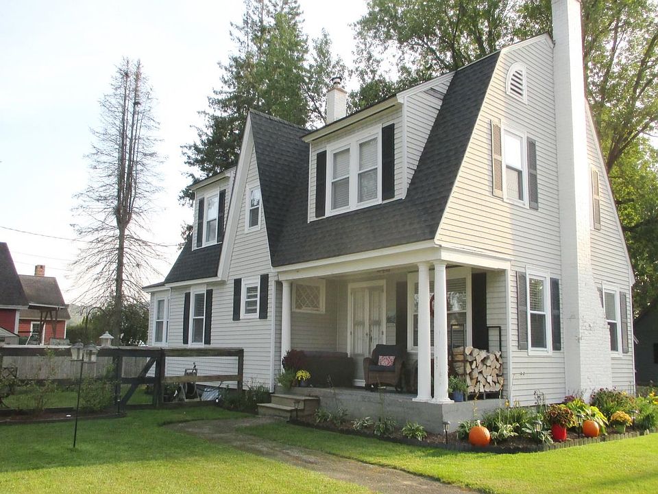This charming 2-story, 4-bedroom gambrel home is located on a quiet residential street just on the edge of the center of town. The first floor offers a remodeled kitchen with high-end Maytag appliances, the electric range with a double oven has a glass cooking top, a toe warmer by the sink, original hardwood floors, and in the extra-large living room, with many useful built-in cupboards for storage, is a fireplace insert that helps to maintain fuel efficiency; plus, the 60-inch TV will stay. Then we come to a delightful dining room, the bright sun-room or den, tiled bathroom with toe warmer by the sink. And from an arched breezeway, you get to the over-sized detached garage that has a 7-foot door that is insulated and with remote control; an attached shed to store the firewood, lawn mower, etc.; on the side of the garage is a nice patio to sit and relax. In the neat and clean basement, there is an area to store your tools or have a small workshop, 2-cedar closets, cement painted floor, a partially finished room to use as a family room, exercise area, etc.; a laundry area with washer and dryer that will stay, along with the extra refrigerator. The level lot is fenced in and beautifully maintained with flower and vegetable gardens, benches placed strategically in the yard, and an area with a fire pit. The owner has just had a new roof put on with 30-year architectural shingles installed, and the driveway paved this past May. This all adds up to a very comfortable home.