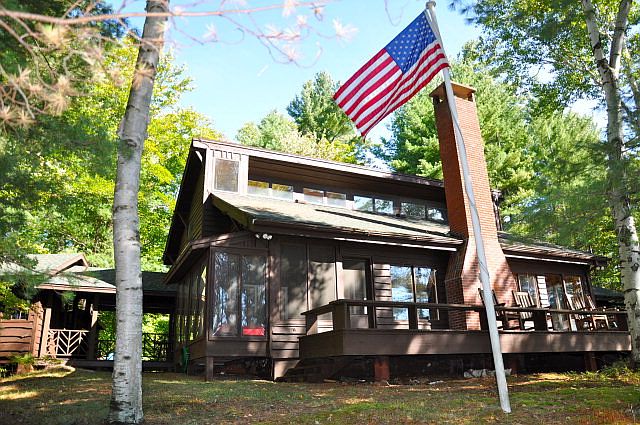 Gull Pond is a private glacial 1 mile lake w incredible fishing, crystal clear water & a depth of up to 70'. There is no public access, & by virtue of deed restrictions the lake is mostly non motorized. Large lot sizes, in combination w APA setbacks and HOA shoreline preservation, give each home a real sense of tranquility. 12 Gull Pond has over 300' of frontage w southern exposure & a view of Big Tupper. The home itself is a beautiful combination of douglas fir and cedar, w features that will make you never want to leave......including stone fireplace, newer kitchen, screened in eating porch w freestanding fireplace, sleeping porch & attached artist studio. Detached garage w space above