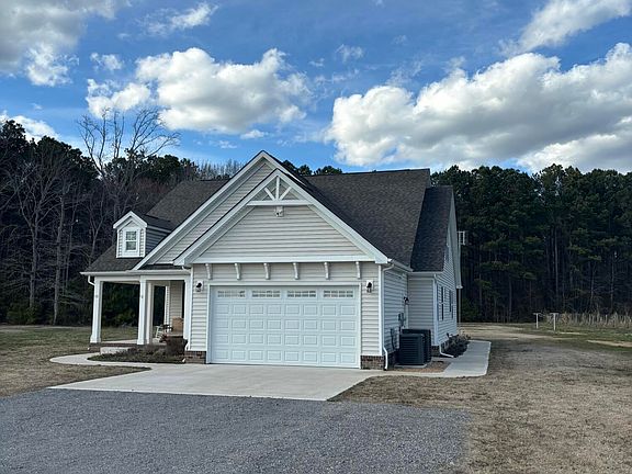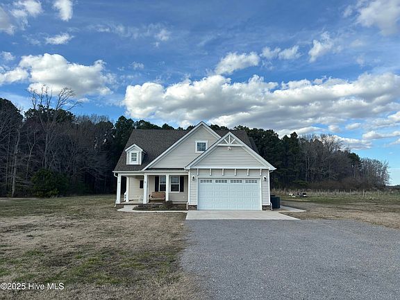 Recently built (2022) in Gates County and it won't last long! This home offers a wonderful floor plan and about 2,700 square feet on over an acre. The main floor primary suite has a vaulted ceiling, a spacious walk-in closet and a luxury tile bath with a soaking tub, double sinks and shower. There is a second bedroom on the main floor with a nearby full bath. The downstairs has a living room with gas logs and built-ins and is open to the kitchen. In the kitchen you will find granite countertops, a pantry, a breakfast nook and recent appliances. There is a kitchen island with an amazing farmhouse sink. Enjoy the country setting from the patio or sunroom. There is a bonus area that would be perfect for a den, home office or dining room. The laundry room has plenty of room for a washer, dryer and more, and it leads to the garage. Upstairs you will find a large bedroom and another full bath, as well as an open bonus room, perfect for a playroom, home office or hobby room. There are multiple walk-in access points to storage in the eaves. The home has wood floors in several rooms. This is a beautiful move-in ready home. The owners built this to be their forever home, not to sell, so it has a lot of the finishing touches that you will want!