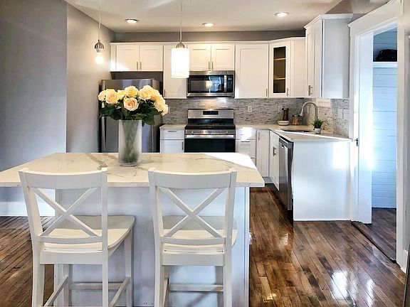 Move-in ready and renovated 4 bedroom 2 bath home with almost 2000 sq feet of living space. Open floor plan features a living room, dining room and family room leading to the brand new kitchen with quartz counters, white shaker cabinets and stainless steel appliances. Gleaming maple hardwood floors throughout the entire house, 4 bedrooms on the 2nd floor, 2 tiled updated bathrooms, new fha gas heating system, new central air conditioning, all brand new windows, new electric, plumbing, and insulation plus a full unfinished basement with high ceilings and a fenced-in yard with ample off-street parking complete this inviting home.