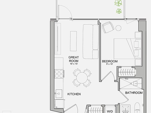In-unit washer and dryerAmple lightPrivate outdoor escapeSpacious great roomPrivate balconyClean modern finishes