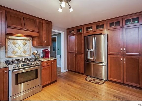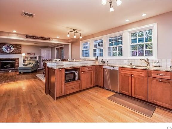 Great Neighborhood-Close to Town-Convenient to Everything! Gorgeous 5 bedroom colonial in wonderful in-town neighborhood. Hardwood floors throughout. Central Air. Open concept, updated kitchen w/ granite countertops, breakfast bar and tons of cabinet space. Master BR features gorgeous en suite bath and walk-in closet. Very spacious bedrooms! Finished lower level rec room, huge laundry room and tons of storage space Lovely three season porch. Escape into your own backyard retreat in this beautifully landscaped 1.72 acres level yard complete with large deck, swing set, play house and storage shed! New siding and replacement windows.