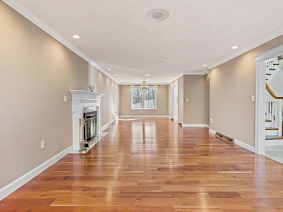Welcome to this beautiful 4-bedroom 3 full bath home on a lovely Cul-De-Sac in Dracut. Home features stunning American Cherry Hardwood flooring and recessed lighting throughout. Enter through the front door where you'll find a dramatic foyer stunning grand staircase bordered by the first-floor bedroom with adjoining bath and the formal living room and dining area. Along the back of the home is the kitchen with plenty of cabinet space flowing into the family room. The upper level features an oversized primary suite with a gas fireplace and a high-end ensuite bath, double sinks, walk-in closet, separate shower & toilet, private balcony. Two additional spacious bedrooms and the main bath complete the upper level. First floor laundry room. This home has an attached two car garage. Bathrooms newly renovated along with the landscaping. Newly seeded Lawn! Some virtually staged photos.