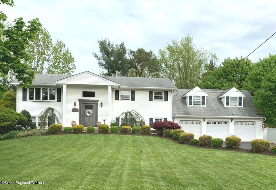 Custom Split level home in Desirable East Freehold. This Exquisite home has been completely updated. It has a steel Front entry door, hardwood floors throughout, updated Kitchen with granite countertops and ample counter space. Upgraded appliances as well. Deluxe master suite with extra dressing area and an oversized bath with spa style shower with multiple heads. The lower level Features a 4th bedroom, a cozy family room with fireplace, as well as a separate rec room area leading into a mud room and a 3 car oversized garage. Their are sliders upstairs and down that lead to a country club style yard with salt water pool with waterfall and paver patio. This stunning home backs to an Open Space preserve that allows you to have plenty of privacy.