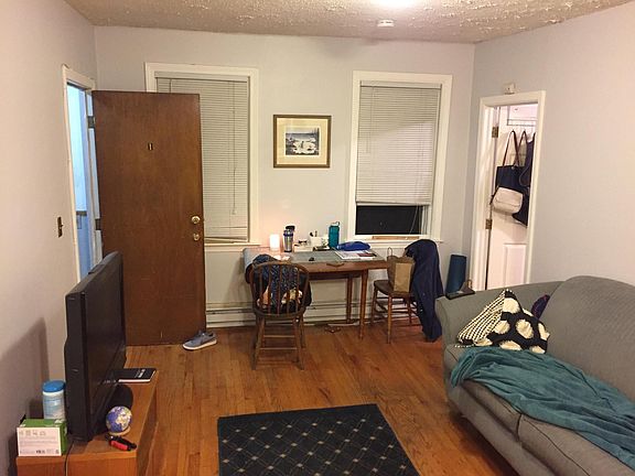 First floor of a small 2 family property. Set in the back of another house offers the unit lots of privacy, a small front yard and steps to Cambridge St. Laundry is around the corner at the laundromat. Dogs are welcome. First, last and fee to move in. Avail 8/1/2019 tenant at will