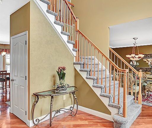 IN DESIRABLE PRESERVE; 4 BEDROOM CENTER HALL COLONIAL WITH 2.5 BATHS AND FULL, WALK OUT BASEMENT. BRICK FRONT, TWIN PEAKS, WHITE WINDOW TRIM WITH DECORATIVE BOX MOLDING, DOUBLE-WIDE STAIRWAY, TOWERING ARCHWAY WITH EMBEDDED FOYER-SIZED PALLADIUM WINDOW OVER ENTRANCE. EXTENSIVE DRIVEWAY OFFERS IDEAL SPACE FOR MORE OFF-STREET PARKING AND LEADS TO AN IMPRESSIVE THREE CAR GARAGE PLUS ADDITIONAL ACCESS TO THE WALK-OUT BASEMENT. THE TWO STORY FOYER INVITES VISITORS TO APPRECIATE THE RICH AND LUXURIOUS FEEL OF THE HOME ON ENTERING, HIGHLY LIKELY TO DRAW SMILES OF APPROVAL AS GUESTS TAKE IN THE FLOW AND GRASP HOW MUCH THIS LISTING HAS TO OFFER.
