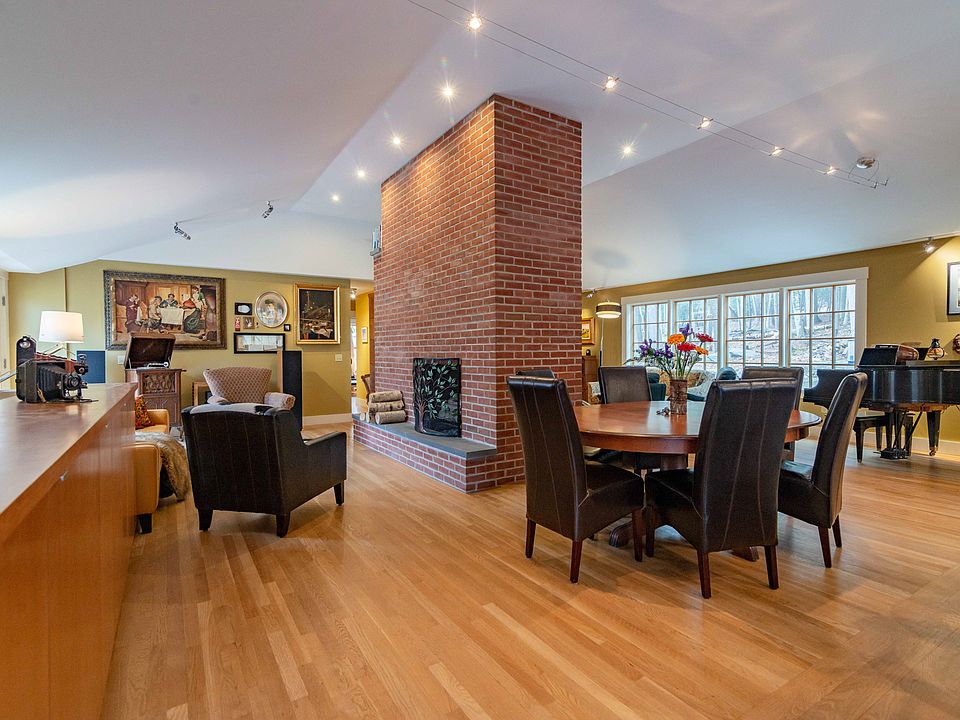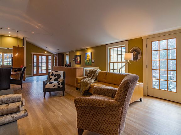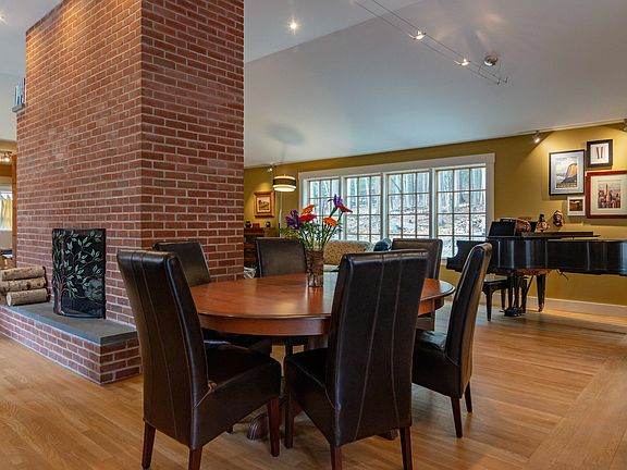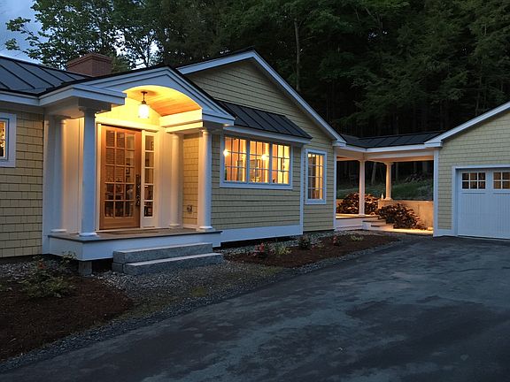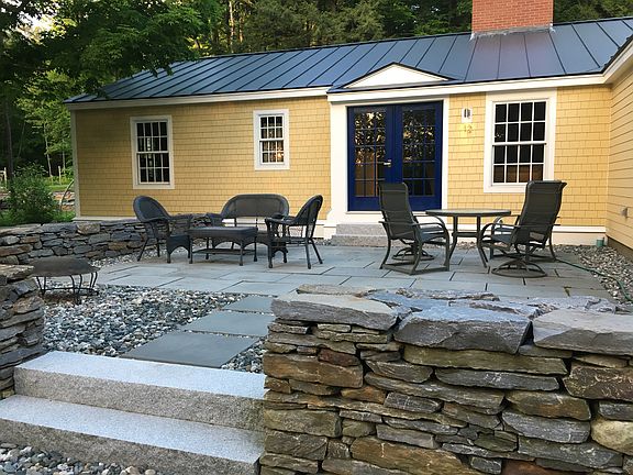 Inquires by phone call or text to owner directly at (603) 252-6561 (emails do not reach the sellers). Buyer's realtors are welcome and will receive their commission, should you have a contract with a buyer's realtor. In-town Hanover, this home has been completely renovated, down to the studs in all but three bedrooms. Including the unfinished, sunlit basement, the home is 3,537 square feet. There are two wood fireplaces in the great room, hardwood floors and natural stone throughout, and an inviting porch looking back into the woods behind the house. At the front is a very large stone walled patio. All systems, Hardi-plank siding, trim, metal roof, garage, porch, windows, spray foam insulation, wood stove, pellet stove, hot water heater, kitchen, bathrooms, soapstone counters, and more, are all new. There is nothing to be done, this home is modern and beautiful, outside and inside. There is also no wood on the outside of the house, though it looks like wood. The layout is "Florida Ranch," with the master suite at the opposite end of the home from the kid's rooms. Also, there are two master suites. The 1,379 square foot basement is unfinished, dry, lit by large windows, and warmed by a pellet stove. Close enough to walk to town, but not close enough to hear the frat parties, this is the ideal in town location.