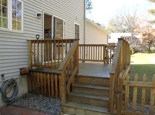 Absolutely PRISTINE condition throughout! Situated at the end of a dead end st. offering nice private setting. Energy star SS appliances remain. Nice size e-i-kitchen w/custom dovetail maple cabinets open to gas fplc family rm w/berber cpt. Slider to deck and patio. AC! Formal dining rm w/hwds, formal living rm. Very bright home! LL has 2 finished rms/ recessed lights. Master has walk in closet, dble sinks, tile floor private bath. Just about 2 miles to Rt. 495. Close to Lake Mirimichi too!