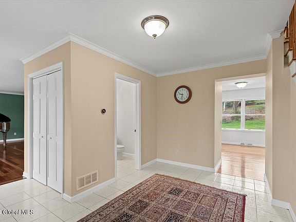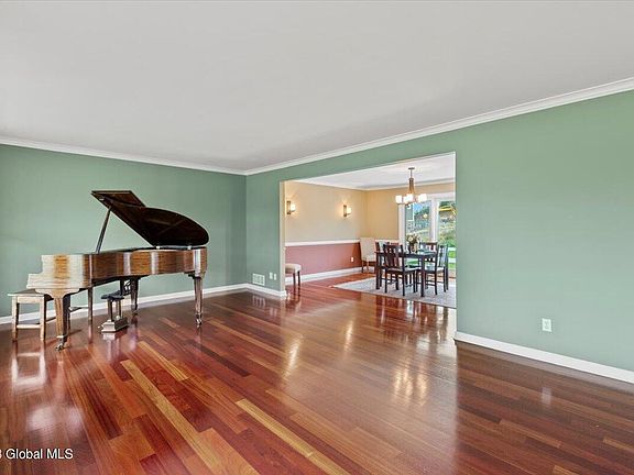 OPEN HOUSE CANCLED Welcome to Your Dream Home! This immaculate Side Hall Colonial is set on a sprawling acre lot w/ a covered porch and enjoy the park like setting. Enter the large porcelain tile foyer & enjoy gleaming oak & Brazilian cherry floors throughout the house. A cook's kitchen w/ granite countertops, stainless appliances, & a cozy breakfast bar. Sunken family room is set up for your entertainment, complete w/ built-in TV, surround sound speakers, & a whole-house antenna hidden in attic offering over 50 channels for free! Oversized bedrooms provide ample closet space, ensuring everyone has their own retreat. Updated roof, hot air furnace, central air, Pella sliders, whole house vacuum, & more!