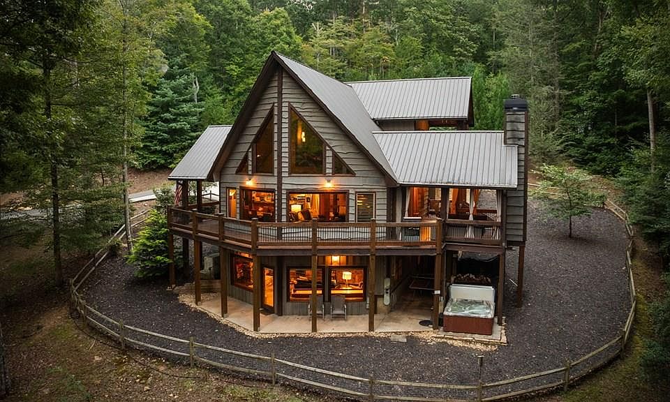 Modern Rustic Retreat in Upscale Gated Community Discover the perfect blend of modern rustic charm and functionality in this stunning prow-front home—ideal for a growing family, a guest-filled vacation retreat, or a high-potential rental investment. Impeccably maintained and move-in ready, this beautifully furnished home features a full-home generator for peace of mind. Enjoy the outdoors on expansive covered porches overlooking a meticulously landscaped yard, tranquil pond, and inviting pavilion area. Whether you're cooking in the well-appointed kitchen or relaxing by the outdoor fireplace, you'll appreciate the privacy of your fully fenced yard. Rare short-range mountain views of scenic Cashes Valley add a special touch to this serene property—an exceptional find in a prestigious gated community. An adjacent lot (Parcel ID: 0065 0091Q), totaling 1.15 acres, is also available to convey with the property—offering added privacy, space, or future expansion potential.