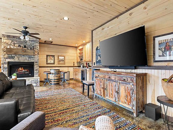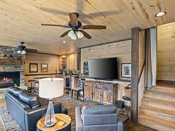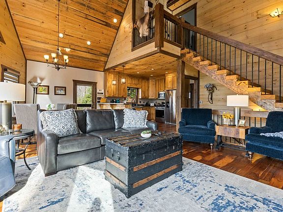 This 3-bedroom cabin is perfectly situated in Cherry Log, GA, offering everything you need for an unforgettable vacation. Enjoy the spacious deck with panoramic views, a hot tub, and a walkway to the beach. The cabin features a game room with a wet bar and shuffleboard table, an indoor fireplace, and a fully stocked kitchen. With ample parking and a washer and dryer, this family-friendly retreat is just 20 minutes from Downtown Blue Ridge and close to Mercier Orchards and Roo Mountain Vineyard. Escape to this modern rustic cabin nestled in the heart of Cherry Log, offering breathtaking views of Cashes Valley. This picturesque 3-bedroom, 3-bathroom retreat accommodates up to 8 guests, blending rustic charm with modern luxury. Enjoy the expansive window wall that brings the outdoors in, giving the feeling of being in a treehouse. Step outside to the wrap-around deck, complete with an outdoor fireplace, or relax by the tranquil pond with mountain views. Whether you're hiking, fishing, or just soaking in the beauty of the North Georgia mountains, this cabin offers the ultimate escape for all. Parking is available in the driveway for up to 4 cars, with a gated community providing a private driveway for 2 cars and a covered carport for 2 cars. Located between Blue Ridge and Ellijay, this mountain haven is perfect for nature lovers and adventure seekers. Nearby attractions include Expedition: Bigfoot - The Sasquatch Museum, Pink Pig BBQ Restaurant, Blue Ridge Scenic Railway, and Amicalola Falls State Park. Enjoy local dining at Pink Pig BBQ, The Sweet Shoppe, Southern Charm Restaurant, Cantaberry Cafe, and Chester Brunnenmeyer's Bar & Grill. Check-in is at 4pm and check-out is at 10am. No pets are allowed and no parties are permitted, with violations potentially resulting in immediate termination of the stay. Exterior cameras are installed to monitor the cleaning team for quality and security purposes. Guests must be 21 years or older to book this property. A guest verification process is required within 48 hours of booking confirmation, including signing a Rental Agreement and providing a valid ID and matching credit card before check-in. A non-refundable $55 damage waiver is required, covering accidental damage during your stay if reported before check-out. The cabin includes a dedicated workspace, allowing you to work remotely while enjoying the serene mountain views.