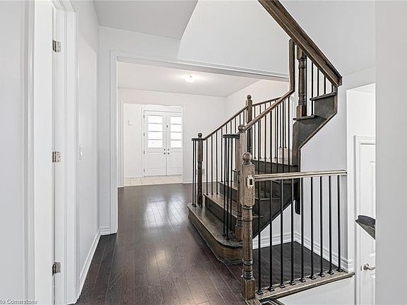 Welcome to 12 Heming Trail in the prestigious Tiffany Hills of Meadowlands, Ancaster! This stunning Rosehaven-built executive townhouse, the sought-after "Pewter" model, offers 1,987 sqft of luxurious living space. This home perfectly blends modern upgrades, comfort, and convenience. As you enter through the double-door entry, you are welcomed into a bright foyer leading to a thoughtfully designed open-concept main floor. Boasting 9-foot ceilings and elegant hardwood flooring, the space includes a spacious living room, a cozy family room with a gas fireplace, and a dedicated dining area. The kitchen is a chef’s dream with sleek brown modern cabinetry, granite countertops, stainless steel appliances, and a functional island. The oak staircase with iron spindles leads you to the second floor, where you’ll find three generously sized bedrooms and two full bathrooms. The luxurious primary suite features a walk-in closet and a spa-like 4-piece ensuite with a soaker tub and a separate glass-enclosed shower. Two additional bedrooms offer ample closet space and share a beautifully updated 3-piece bathroom. The convenience of a second-floor laundry room adds to the home's practicality. This home offers privacy and tranquility while being steps from Tiffany Hills Elementary School, parks, and trails. It's conveniently located near shopping centers, public transit, and major highways, including the 403 and the Lincoln M. Alexander Parkway. This is an incredible opportunity to own a home in one of Ancaster’s most desirable neighbourhoods. Don’t miss out—schedule your showing today!