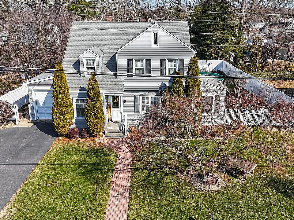 The only way to describe this country cottage cape is absolutely charming and meticulously kept!! The attention to detail and loving care over the last 20 years is abundant throughout! This delightful property features three ample bedrooms PLUS a home office or 4th bedroom and two full bathrooms. Walking up the brick walkway you will see the newer siding and meticulously kept yard. Once inside you will see the comfortable and cozy living space. The interior boasts a functional layout with ample natural light illuminating each room. The heart of the home is the inviting living area, perfect for relaxing or entertaining guests (hardwood floors underneath the carpet). Off the living room is a darling sitting room. One of the highlights of this property is the large back deck and above ground pool, providing an ideal space for outdoor gatherings, barbecues, or simply enjoying the tranquil surroundings. The expansive backyard offers additional outdoor space, perfect for gardening or other outdoor activities. The back yard is fully fenced in with a 6ft vinyl fence and cute picked fence at front. In addition the backyard offers a massive wood workers dream shed, which has electric and heat. This home is not only aesthetically pleasing but also well-maintained, ensuring a move-in-ready experience for its new owners. Don't miss your chance to make this beautiful house your new home! NO FLOOD INSURANCE REQUIRED!!