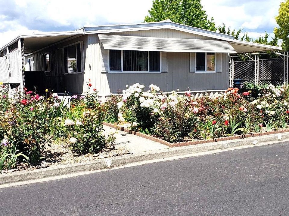 Gardener's Delight! Rose gardens, grape vines on back fence and huge lemon tree as well as your own mini green house! Large shed and extra storage outside for all your projects. Dual pane windows, and recently installed 2022 furnace and central air, new dishwasher and new W/W carpet! Newer foam roof. Drip irrigation set up for yard. Easy maintenance aluminum siding and earthquake bracing. Just pressured washed exterior! This 1972 2ba/2ba home resides in one of the nicest over 55 parks in SR, beautiful clubhouse and amenities. Guest parking next to house for visitors! Close to shopping, and near the Finley Senior Center on College makes this a great location.