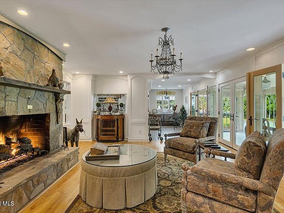 This dream home offers refined design & quality craftsmanship w over 4500 sq ft of living space. Many renovations done in 2007 including windows, roof, and a custom chef's kitchen which includes Thermador, Wolf & Miele appliances, 3 prep areas w sinks & plenty of storage. A must see! The main level offers an open concept layout w 3 fireplaces, 2 dining rooms, one which overlooks the manicured backyard, and one overlooking the beautiful front yard. A great room & main level primary w a sitting room, gas fireplace, walk-in closet, patio & an en-suite w Travertine flooring. Upstairs retreat to 3 additional spacious bedrooms w en-suites, 2 sitting rooms & a flex space & laundry. A private elevator ensures effortless access to every level. Every detail has been thoughtfully crafted. This house is the perfect blend of sophistication & comfort and is an entertainer's dream. Some furnishings negotiable. Price improvement..Seller is motivated and can close quickly. Additional parcel included in sale to total 2.23 acres