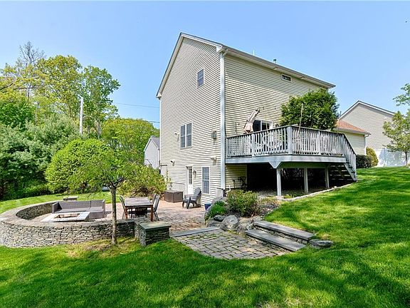 Welcome to 12 Hickory Road, a beautifully maintained Colonial home set on .36 acres in highly desirable Lippitt Estates! ENJOY ENTERTAINING friends + family w 1st floor layout – Living Room opens to Dining Room w gas fireplace, slider to deck. Kitchen offers island w breakfast bar/beverage fridge, granite counters, S/S appliances. Family/Playroom could be Dining Room/Home Office. Mudroom area w 2 closets + Half Bath complete 1st floor. Upstairs offers Main Bedroom w cathedral ceiling, walk-in closet, Full Bath + 2 more Bedrooms + Guest Full Bath. Finished Walk-Out Lower Level could be Family Room/Home Office/Playroom/Exercise Room. Utility Room w Laundry Area, Furnace/Hot H2O Heater + Storage. OUTDOOR ENTERTAINING at its best w custom brick patio/fire pit + stunning stone wall! C/A, sprinkler system, vinyl siding. Notable updates: Kitchen slider w internal shades (2023); Refrigerator/Beverage Fridge/Generator Rebuild (2022); Well Pump (2021); Hot H2O Heater/Sump Pump (2019). Come see!