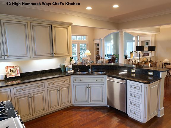 Charleston-style single-family home with 4,600 heated/cooled sq. ft. nestled among gorgeous mature live oaks on a private lot, overlooking the inlet water with views of the Atlantic Ocean in South Litchfield & Pawleys Island, SC. Private community with docks for fishing & boating, including drive-up floating boat dock & outdoor shower. Home features 5 bedrooms, 4 baths, custom cherry hardwood floors throughout, energy-efficient geothermal HVAC, gas fireplace in great room, Carolina sunroom, first floor master suite, plus guest master suite upstairs. Custom chef's kitchen features designer cabinets, granite counter tops, Wolf gourmet range, new Bosch dishwasher, SubZero fridge, & adjacent Butler's pantry with excellent storage. Extensive 1st & 2nd floor porches & decks to relax or watch the sunrise. New roof, HVAC system, garage door opener, and irrigation pump.