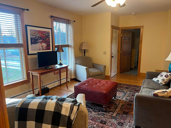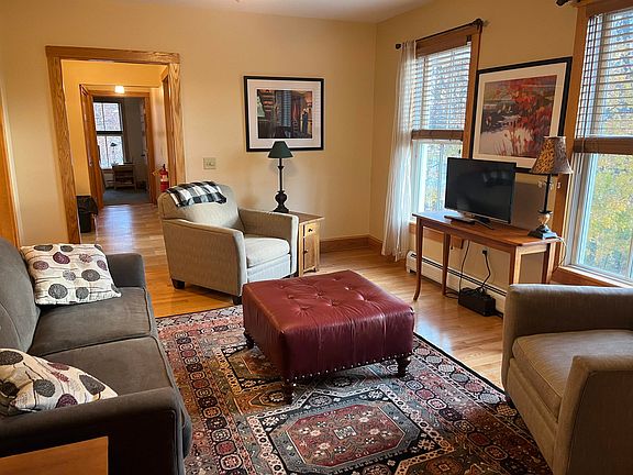 Rent includes heat. Wonderful, light-filled, 2 bed, 2 bath apartment in Randolph Village. Clean, very spacious (1350sq. ft.) unit in a quiet, safe, walkable neighborhood. Has dishwasher, microwave, and washer/dryer. New, stainless-steel appliances arriving this week (bottom freezer refrigerator and smooth top range). New front load washer and dryer. New appliances not pictured. Apartment is on the second floor of a thoroughly renovated duplex that is in like new condition. Master bedroom has ensuite bathroom. Includes space in dry basement for storage. A short walk takes you to Gifford Medical Center, local hiking and mountain biking, and downtown Randolph, where you'll find restaurants, the town library, Chandler Music Hall, and many other amenities. A supermarket and Vermont Technical College are a short drive away. Three miles from I89 Exit 4, about a half hour from Montpelier, 25 minutes to S. Royalton/Vermont Law, and 45 minutes to Hanover. Well-behaved pets are negotiable, but certain dog breeds are not allowed. No cats that go outside. Off-street parking provided. No smoking on property. One month security deposit required. Application required. One year lease, renewable annually. Available August 1, perhaps sooner. $2350/month.