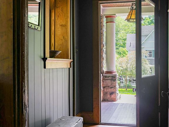 Stately victorian homeTwo-sided fireplaceFully renovated bathroomsCovered wrap-around porchPrivate sinkSophisticated moody blueStone patio