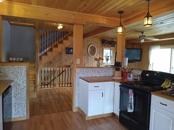 Charming 2 bedroom, 2 bathroom home with beautiful woodwork throughout. Open concept kitchen. Enjoy the private back deck & unwind in the large salt water hot tub! No need to worry about the kids or pets with the fully enclosed back yard. Main garage (25 x 27) is heated with a workbench area and an attached storage room (9 x 25). Many updates including a recent weatherization project (insulation) including a new hybrid water heater and a new Harmon pellet stove. Nice country setting, yet close to necessities. Good schools and located on a quiet dead end street. Pre-approved buyers only.