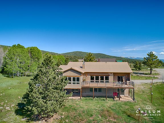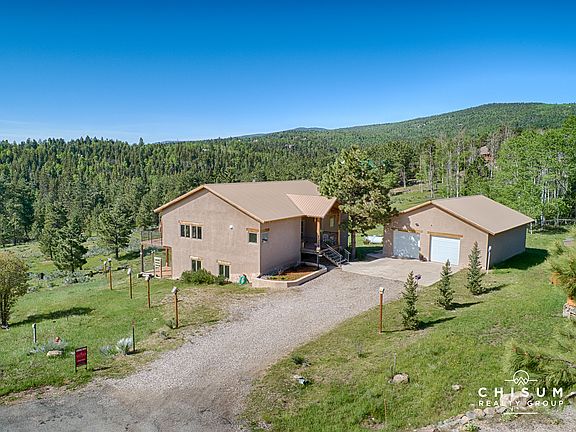 Situated on a ridge line above the Angel Fire Resort Golf Course sits this beautiful custom home built in 2001. The southern-facing mountain views are spectacular and sunlight floods the home with natural light all year round. The home sits on .62 acres but borders a large greenbelt that protects your view and provides a sense of privacy not common near the golf course. Plus, the golf course is only a block away! This home is right off Spyglass Rd., which provides quick access to village center and Angel Fire Resort. Inside the the home you'll find details and level of finish that are second to none. Custom made doors, large wood vigas, and custom woodwork can be found throughout. The great room provides a generous living space situated around a kiva fireplace, large windows, and hardwood floors. The kitchen features custom wood cabinets with punched copper accents, stainless steel appliances, two sinks, and a sizeable pantry. The master bedroom is on the main floor with an attached sunroom / hot tub room and an ensuite bath with dual sinks, tile shower, walk-in closet and a laundry area. The lower level features a spacious second living area - perfect for a pool table - along with two guest bedrooms, two full baths, and a bonus room. 12 Hogan Circle also has a heated oversized two car detached garage that hides a large workshop in the back. This home comes mostly furnished and is ready for the next family to love!
