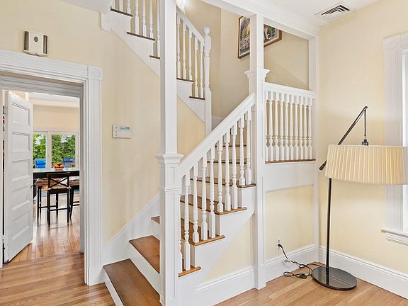 SPACIOUS HALF DUPLEX in desirable Hopedale neighborhood is ready for new owners. This property offers 3 levels of finished space, large rooms, loads of charm and is nicely updated. The first floor of this property has wood floors throughout. There is a a comfy living room, entry hall, and spacious dining room with built ins, as well as a charming eat in kitchen with a walk in pantry area. The kitchen is updated with white cabinets, recessed lighting and newer appliances. The second floor offers 3 comfortable Bedrooms, all with wood floors, and a full bathroom. The finished third floor offers a Bonus Room, a large front to back space with wall to wall carpeting that will lend itself to many different uses. The front of the home has a charming 3 season porch and the back of the home has a deck and fenced yard. Be sure to notice the wide baseboard, crown molding, bead board, pocket doors & wide hallways as you tour this home. No Condo Fees, economical gas heat, move right in.
