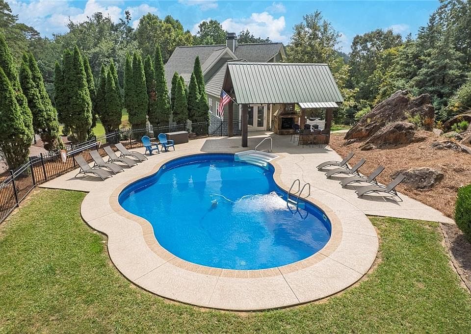 This is definitely not your cookie-cutter home! If you’re looking for a one-of-a-kind entertainer’s dream, you’ve found it. This custom-built home is tucked away in a private cul-de-sac within an exclusive lake-side gated community, offering unmatched location and amenities. Step through the elegant cypress doors into a grand foyer with marble flooring and extensive crown molding. The chef’s kitchen features a 6-burner gas stove, double ovens, and a spacious island. The master suite is conveniently located on the main level. The large rec room includes a full kitchenette and opens directly to the pool area, complete with a pavilion, stone fireplace, bar, and private side yard — perfect for hosting gatherings. Additional highlights include a 3-car garage and thoughtful design throughout. Enjoy life near Lake Allatoona, the state park, marina, and I-75, all while keeping the convenience of the city just 30 minutes away. This is an incredible value in Waterside, only minutes from Park Marina and Lake Allatoona!