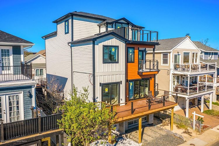 Sleek and Modern New Construction 4 Bedroom, 4 Bath Builder's Home. Custom kitchen with quartz counters and stainless appliances. Marble Bathrooms, Laundry on Bedroom level. Oak Floors and stairs. Expansive Open Floor Plan with 8 1 2 ft. Ceilings. 2 Gas Fireplaces. 4 stop Elevator. Pella windows and doors. Large Garage. Outdoor living space including 5 Trex and fiberglass balconies with marine grade stainless steel wire rails to allow scenic views of Sandy Hook, the Atlantic Ocean, Freedom Tower and Verrazano Bridge. Countless amenities, including top notch restaurants, Hartshorne Park and Seastreak Ferry. 2-10 New Home Warranty.