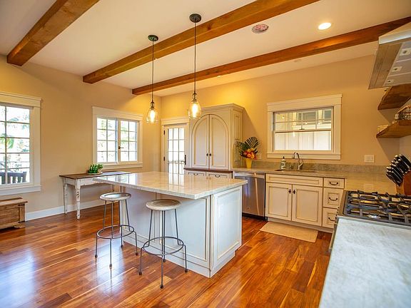 One of Maui's most Finite offerings, Situated on the Napili Bay Block and next to arguably the best beach on Maui: Napili Bay. Napili Bay features a sandy bottom ideal for swimming, turquoise water, stand up paddle board, perfect snorkel spot, dining, and The Kapalua Golf Courses which are in close proximity. A unique feature of this home is, it is a builders' home; built and designed by one of the islands best contractors. 12 Hui Road consists of 3-dwellings including two structures with two 3-bedroom homes and a 2-bedroom cottage. The compound was built with style, comfort and structural integrity in mind. The front house is incorporated with Distressed Bamboo flooring and granite counter tops throughout. The quality doesn't stop there as even the laundry room has teak barn doors. The outdoor covered deck area is made from Brazilian Ipe Hardwood, so strong it's known to even break nails. The back house is even larger with Koa wood floors throughout and ceiling beams made out of Hand-Hewn Douglas Fern wood. The radius stairwell has Wrought Iron railings adding another beautiful touch to this custom interior design. The lanais in the back house are also made of Brazilian Ipe Hardwood. Both structures feature ocean and island views. A stunning pool, spa and rock-river water feature is situated between the houses creating a magical resort feel. All three dwellings are being sold partially furnished.