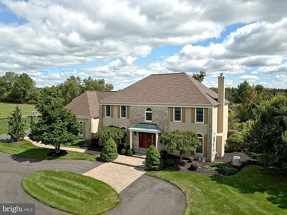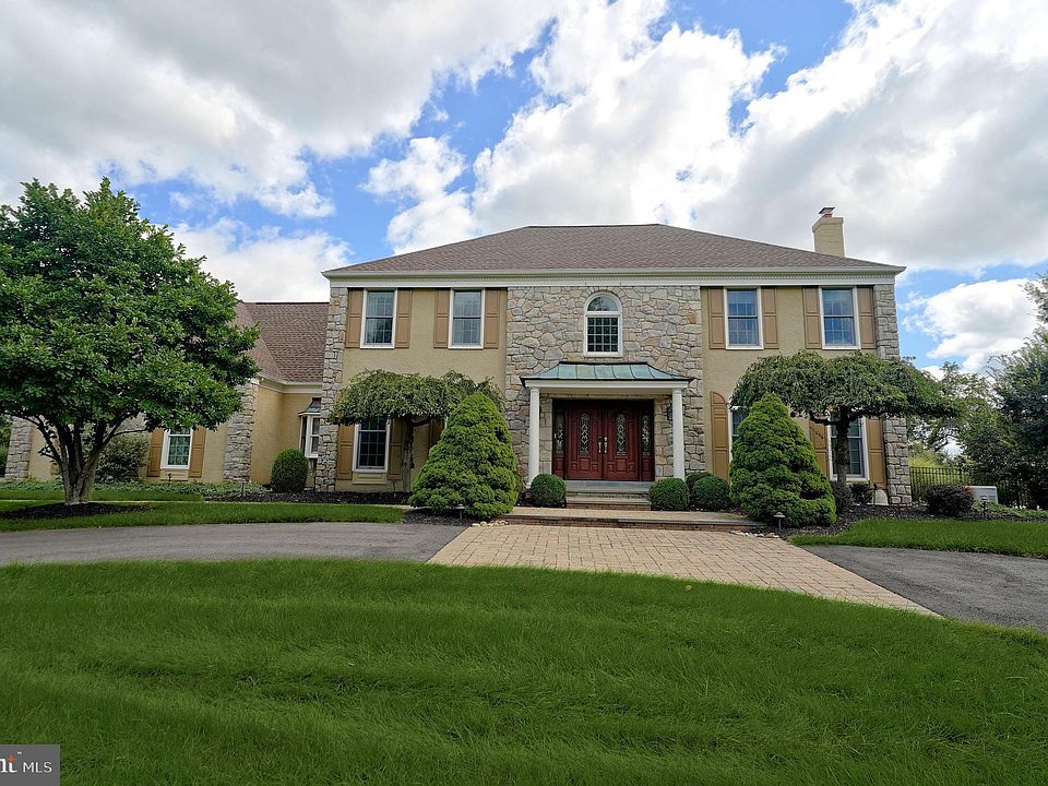 Impressive custom home in Hopewell NJ. Style & Attention to Detail exudes from every room. The double height entry foyer, with wainscoting, gives a hint of what lies beyond. Unique to this 5-bedroom home is the 5TH BEDROOM ENSUITE which is in a private dedicated space with its own staircase and full bathroom- perfect for AU-PAIR/IN-LAW or guests for short or long stays! This home boasts glistening floors which flow though the formal living room; enhanced by a gorgeous marble surrounded gas-induced fireplace, and through the formal dining room, with beautiful crown molding and front facing windows. Views of the outdoors can be seen from the office/study which opens to the expansive family room showcased by a floor to ceiling stone gas fireplace, sky lighted cathedral ceiling, and slider access to the backyard oasis. The adjacent open chef's kitchen is equipped with a large center work island w/seating, subzero fridge, tile back-splash, granite countertops and double wall ovens. A separate step-down breakfast room has a slider to a second patio and expansive yard. A hallway off the kitchen leads to the walk-in pantry, laundry, three car oversized garage and to the 5th bedroom quarters. A generous sized half bath ( which can easily be converted to a full) completes the main level. The stylish staircase leads to the second floor of living. The primary bedroom is a dream with custom walk-in closet, adjacent sitting area and updated bath with vaulted ceiling, skylights, granite topped dual sink vanity, whirlpool tub and separate shower. Three additional great-sized bedrooms, each with custom closets, and an updated hall bath complete this level. The fully finished basement adds an additional 1000 Sq. ft of living space with a private in-home office with built-in, book/display case ,dedicated space for play, workout and media, and 2 closeted storage rooms. Relax around the sensational in-ground pool with its soothing waterfall and enjoy the serenity of the magnificent surroundings. Both the home and pool area are equipped with stereo surround sound . There is plenty of parking for family and friends on the new circular driveway. A house matching storage shed sits to the rear of the property to contain lawn and pool equipment. Recent improvements include roof, pool heater, attic fan, windows, driveway, Nest system, whole house generator, garage openers, Yale keyless entry lock system and more! Home is equipped with a security system and seller is including a 1 Year AHS "Shield Complete" Warranty as well! Security cameras are in use.