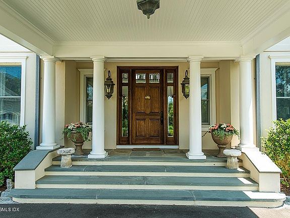 Spectacular waterfront property with views across Sound to the L.I shore - charming lighthouse in foreground. Wonderful quiet Lane and real privacy. 115 feet of shoreline with wall, and 70 ft pier to dock with hoist. Large verandah surrounded by fabulous pool and terrace including an outdoor fireplace. Lovely dining pergola and outdoor kitchen with gas or charcoal grills. Porte cochere at entrance, wide center hall with balcony study at top of curved stairway. Amazing MBR suite - sitting room, bedroom dressing rooms, elaborate bathrooms and then enormous clothing storage room or large exercise room. Impeccable condition.