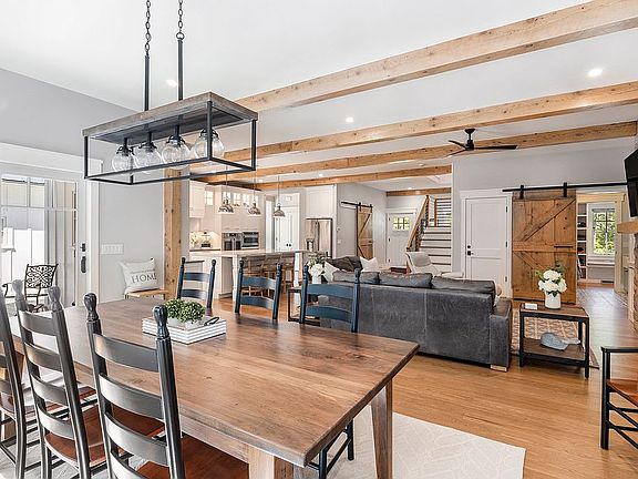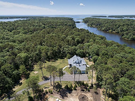 Square-footage does not include Finished Basement with additional bed and bath Stunning piece of property, newly built modern farmhouse with a beach/cape cod feel to it. Hard to come by 2 acres of privacy with a long circular driveway to greet you home. Walk the small path from your backyard to the Moonakis river with your own dock to launch a small boat/Kayak etc. (shallow waters), desirable Waquoit Bay just minutes away as well as all the shops and restaurants on Mashpee commons. No detail was spared when building this home, even the stunning wooden beams throughout were brought all the way from VT. Exterior features to be noted: 3 car heated garage,Tranquil farmers porch, Stone patio of the finished LL with separate entrance, Screened porch off primary bedroom, large trex deck with 2 entries of main first floor. The home was designed with one floor living in mind, all your main amenities including the primary en-suite are on the main floor, 2 additional bedrooms each with their own bathroom are on the 2nd floor, large lower level with separate entrance.