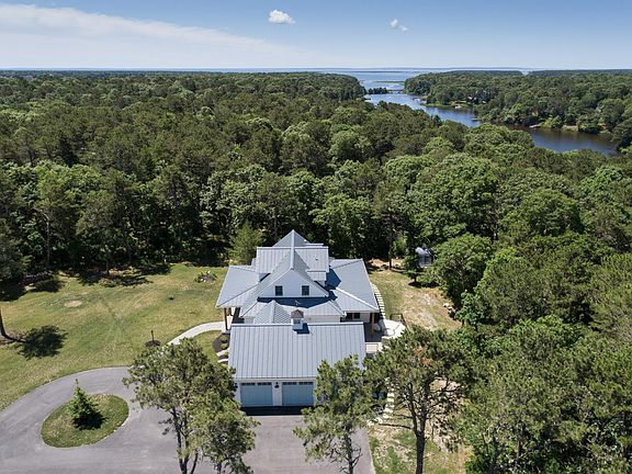 Stunning piece of property, newly built modern farmhouse with a beach/Cape Cod feel to it. Hard to come by 2 acres of privacy with a long circular driveway to greet you home. Walk the small path from your backyard to the Moonakis River, with water access to desirable Waquoit Bay. Just minutes away as well as all the shops and restaurants at Mashpee Commons. No detail was spared when building this home, even the stunning wooden beams throughout were brought all the way from VT. Exterior features to be noted: 3 car heated garage, Tranquil farmers porch, Stone patio of the finished LL with separate entrance, Screened porch off primary bedroom, large TimberTech deck with 2 entries of main first floor. The home was designed with one floor living in mind, all your main amenities including the primary en-suite are on the main floor, 2 additional bedrooms each with their own bathroom are on the 2nd floor, large lower level with separate entrance.