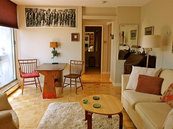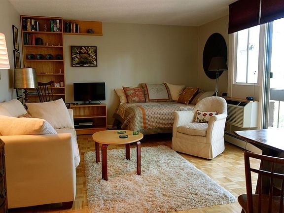 Minimum rental period is six months. Fully Furnished. It's a sunny, treed oasis one block from the best restaurants and coffee shops and the heart of thriving Central Square. Walking distance to Harvard and MIT. Two blocks to the Red Line or Whole Foods. Everything you can think of is at your fingertips. The location is just outstanding. The studio will be available for rent June 1, 2019. The 430 square foot studio living space is bright and spacious thanks to a wall of glass and your very own Juliette balcony you can step out onto from the main room to see what the weather's doing. The kitchen is a very functional and well-equipped separate space with lots of storage. There is a two-burner electric range and a combination microwave/convection oven. There's also a huge clothes closet in an ante-room that leads the rather retro styled but pin-drop neat tiled bathroom with Jacuzzi tub. Fire Stick with TV and Netflix - add your Amazon Prime, HBOGo or whatever you like to watch. The laundry room is at the lobby level. It is an elevator building. An assigned parking space is available for rent for an additional $150 per month. A small storage locker in the basement is included in the rent. The building has a sauna and a common roof deck with fantastic 360-degree views! There is a six-month minimum rental period; longer stays will also be considered. This is a No-Shoe house, so shoes must be removed before entering. *Please note it is a 430 sq ft studio comprised of an entry foyer with coat closet; a main room with a deliciously comfortable, brand-new full-size bed with throw cushions, a sleeper sofa in case you have family visit, a secretary desk with lots of storage, a dining table for two or three, an armchair and sliders to a step-out balconette; there is a separate galley kitchen; a separate walk-through closet room; and a bathroom with a shower/jacuzzi tub. This is a fully equipped and very well-appointed furnished rental. There is a 6-month minimum rental period. Longer leases are welcome, of course. Generally, first and security is required. Sorry, no pets/no smoking. This is a No-Shoe house, so shoes must be removed before entering.