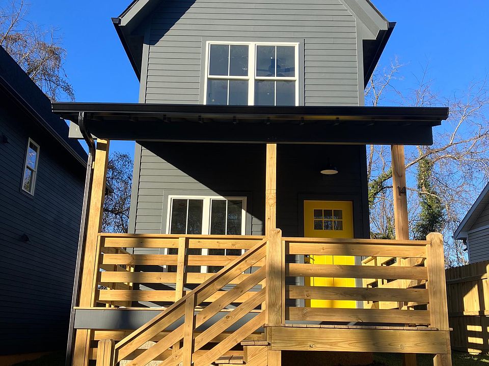 Energy efficient, new construction single-family home in Burton Street neighborhood of West Asheville. Light filled open floor plan. Hardwood floors throughout, tile in bathroom. Kitchen with Whirlpool stainless steel appliances, quartz countertops, subway tile backsplash. Laundry closet with stacked washer/dryer. Wide slat blinds on all windows. Covered front porch, large rear deck, fenced in yard. Off street parking for two vehicles. Sealed crawlspace with additional storage. Tenant pays electricity, water, cable, internet. Landlord provides landscaping. $2150/month $2150 security deposit Small, well behaved pets considered ($50 fee per pet per month) Please call or message to schedule showing. *Photos are from identical property next door - floor plan is flipped. Tenant pays all utilities. Landlord provides landscaping. Well behaved small to medium pets considered with $50 per pet per month fee. Strictly no smoking or vaping.
