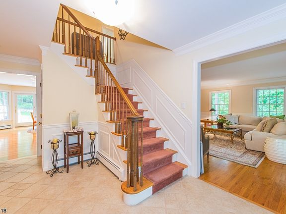Gorgeous colonial on cul de sac street, halfway between the mountain and valley. Open, wraparound porch in front with gazebo area. Complete with upgrades including recessed lighting, moldings, updated granite center island kitchen with wine fridge, Viking professional cooktop stove and refrigerator, Fisher Paykel dishwasher, FR with wb fireplace, wood doors throughout, hardwood floors, 3 updated baths, huge 1st floor bedroom with walk-in closet and adjacent bath, Master BR with tray ceiling, large walk-in closet, full bath featuring soaking tub and stall shower, baseboard hot water heat with 4 zones, central vac, large deck overlooking incredible backyard with fire pit and hot tub. Stone walls surround the home, along with brick paver walkways and landscape lighting. One of a kind, must see!