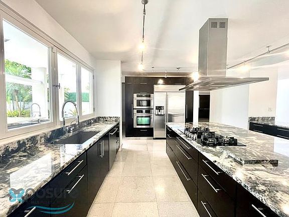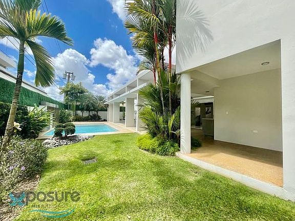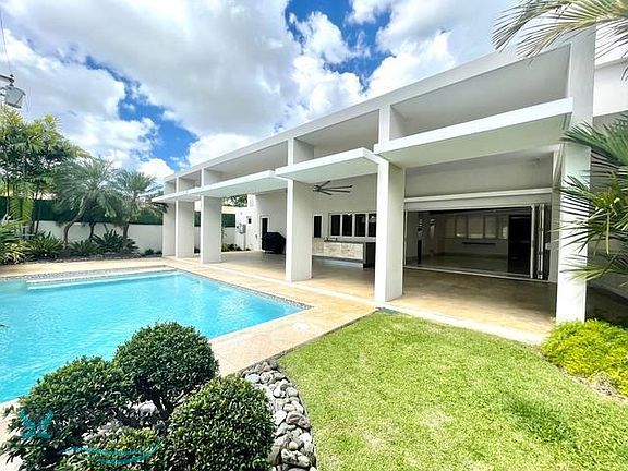 Exclusive home in coveted Garden Hills, steps away from Caparra Country Club. Boasting 5 bedrooms + maid's and 7 bathrooms, featured throughout its 7,255 square feet. Sitting on a 1,100 square meter lot, with a large terrace and a salt-water, heated pool. State-of-the-art equipment and Sonos sound system. Full power generator and water tank. 24-hour security. Premiere location within Guaynabo. Offered at $20,000 per month, with immediate availability..