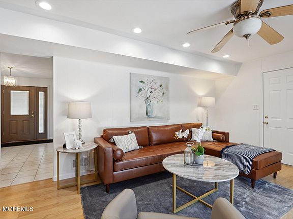Welcome to this stunning 4-bedroom, 2-full bath split-level home in the desirable community of East Brunswick, NJ. Meticulously maintained and beautifully updated, this home offers a perfect blend of modern upgrades and timeless elegance.The first floor features a Foyer, Family Room & spacious bedroom and a full bath, ideal for guests or multi-generational living. Steps from the Foyer lead up to the Living & Dining Room. Large windows here stream in natural light. The upgraded kitchen on this floor is a true chef's delight, showcasing sleek granite countertops, new back splash, stainless steel appliances, and plenty of cabinetry for storage. Steps from here lead up to the 3 bedrooms & Full Bath attached to Master Bedroom. All bedrooms have new recessed lighting & replaced windows. Throughout the home, you'll find gleaming hardwood floors, fresh paint, and an abundance of natural light that enhances the inviting atmosphere. The finished basement offers additional living space, perfect for a family room, home office, or recreational area. Family room has sliders leading out to the backyard. Step outside to the large yard, where you'll find a lovely deck, ideal for outdoor entertaining or simply relaxing in your private oasis. 2 car oversize garage has floors freshly epoxy painted. This home is further enhanced by mirrored walls that add a touch of luxury and sophistication to the home. Move right in and enjoy the comfort and beauty of this well-appointed East Brunswick gem! Excellent East Brunswick School system & proximity to highways, shopping, NJ Transit with direct non-stop bus to NY makes this location unbeatable. Book your tour appointments fast before this beauty is gone!