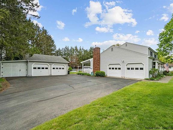 RENOVATED COLONIAL WITH GORGEOUS INGROUND POOL AND STUNNING BACKYARD OASIS. 4 CAR GARAGE with Carport. 2 Car Attached and 2 Car Detached Garages Located less than 85 miles from NYC and George Washington Bridge. Trailways Bus line and all major transportation. Close to entrances to the rail-trail along with convenience to shopping centers. This 4 Bed/3 Bath offers a private Corner Lot in Tillson, NY. The radiant heating floors are throughout the family room and renovated kitchen. The spacious dining room leads to an additional Living room. The French doors lead into the foyer which inc a Full bath on the 1st level. The 2 nd floor inc 2 full baths and 4 bed and/or home office to further add to the expansiveness of the home. The basement level offers many possibilities to include a home gym, family room for entertaining. Laundry Room and 2 additional storage areas. This impeccably maintained home has had many upgrades Water heater-2020 Water Softener-2020 Pool pump-2020 Pool liner-2020