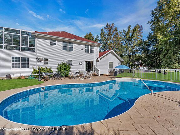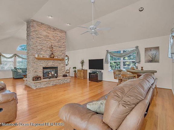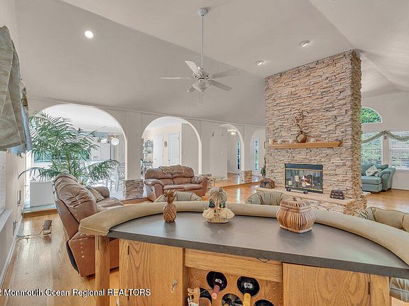 A taste of the Mediterranean in the center of Jackson Township. This spacious, beautiful home is situated on one acre of land at the end of a cul de sac and surrounded by a private buffer of trees. An open airy floorplan features a grand two-sided fireplace in the family room with high ceilings. This lovely home has a first floor bedroom - perfect for guests - and the half bath has space to be converted into a full bathroom.