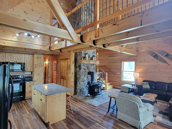 This like new home on Eustis Ridge is absolutely stunning! The builder has clearly put a lot of thought and attention to detail into every aspect of the design, and it shows in the custom rock cathedral chimney in the center of the home, as well as the cathedral ceilings with exposed beams. The open flow between the kitchen, dining room, and living room is perfect for entertaining. There's a fully finished 4-season sunroom on the main floor and lower level provides even more space for relaxing and enjoying the beautiful surroundings. The log catwalk to the log furniture bedroom adds to the cozy cabin feel of the home, and it's great that there are so many outdoor recreational opportunities in the area, from Flagstaff Lake to Sugarloaf Mountain, as well as trail riding, snowmobiling, fishing, hunting, and mountain biking. This is the perfect place for anyone who loves to be in the great outdoors! Attached oversized 2 bay garage has easy access to the house with an oversized mud room.