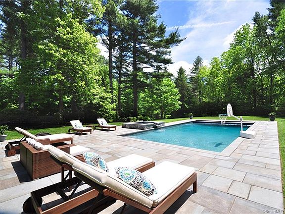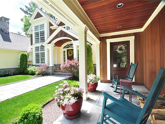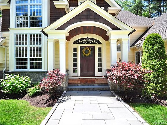 This exquisite custom built home is one of Jack Kemper's masterpieces in Architectural design and detailing A private retreat set on 3.9 acres with a brook and waterfall right outside your back door. As you approach this lovely estate, you immediately feel the privacy and the elegance, making this a special place. The walkway entry shows old world charm with gorgeous windows and millwork along with the stone and wood exterior. As soon as you enter, the elegant open floor plan is perfect for entertaining with a lovely formal dining room and the natural flow into the spacious fireplaced great room with wonderful lighting bringing the outside in. There is a fireplaced library which sits privately for those quiet moments. The fireplaced kitchen is outstanding and one of a kind Special crafted cherry cabinetry with top of the line chef appliances, built-in hutch, desk area and spacious island make this a show stopper There is a first floor master bedroom with a luxurious bath including a steam shower and large walk-in closet. Upstairs there are 4 additional bedrooms and 3 full baths along with a bonus room with a separate staircase off the best mudroom ever with numerous cubbies and closet space. The grounds are magnificent offering a beautiful terrace overlooking the heated inground pool with spa and a wonderful lounging area to take a dip and soak up the sun Also for those baseball lovers there is a batting cage along with a private beach area shared by only a few Timeless
