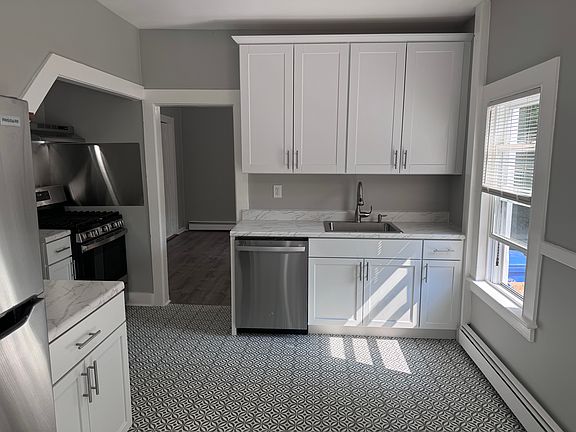 Completely renovated from top to bottom! 2 BR apartment + walk up finished bonus room! Updated kitchen with brand new white shaker cabinets, counters, floating shelves, flooring, light fixture, and brand new stainless steel appliances (refrigerator, oven range, dishwasher). Updated bathroom with brand new shower, vanity, mirror and toilet. New luxury vinyl plank flooring throughout. New lighting fixtures throughout. New windows. Freshly painted. Large living room, two bedrooms, and a special walk up bonus room/finished attic area, perfect for a home office, exercise area, rec room, huge closet, etc! The unit has two entrances (a covered side porch as well as a rear entry with storage shelves), basement with washer and dryer + tons of storage, and a small backyard. Off-street parking available in driveway. Easy access to Rt 8/Merritt Parkway/I-95. Walk to restaurants, bars and transportation. Tenant pays all utilities (gas, electric, internet/cable). Tenant is responsible for snow removal. Landlord pays for lawn care, water, garbage pickup, and sewer.