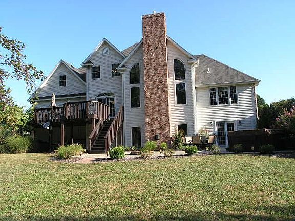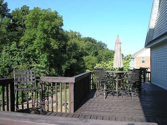 This is such a stunning home on both the inside and the outside. This 4 Br, 2.5 Bath 1.5 story home has it all including a beautiful setting backing to trees for a lot of privacy. This home has a 2 story foyer which leads to a breathtaking 2 story Great Room with beautiful brick floor to ceiling fireplace & lots of windows. This home has a spacious kitchen w/ staggered oak cabinets w/ crown molding, large breakfast area walks out to deck with fabulous view. Master suite on the main level has lots of space with a huge walk in closet, a double vanity, large marble garden tub and separate shower. Upstairs you will find beautiful balcony with wrought iron spindles, spacious bedrooms, full bath w/ laundry chute & office. The walkout basement is unfinished w/ sliding door that leads to huge stamped patio w/ hot tub & fire pit plus a lovely view. This home also has an oversized finished 2 car garage w/ workbench area. There is natural gas on deck to hook up to grill. Great Home & Location