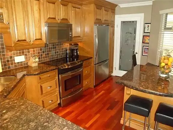 This home features 1 bedroom, den . Brazilian cherry hardwood floors on main, custom designed kitchen with stainless steel appliances. Travertine tiles in guest bath on main. Custom mantle granite surround fireplace. Master bedroom features walk in closet with spa like five piece ensuite