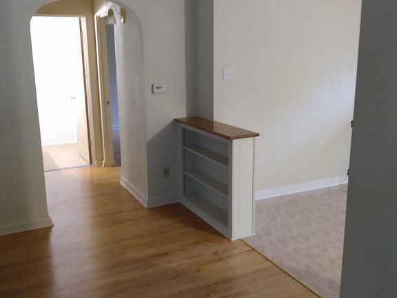 All brick duplex unit 2 bedroom, 1 bath, full unfinished basement with washer and dryer provided. Off-street covered parking. Newly refinished hardwood floors, new sink, counter and range. Ceiling fans in bedrooms. Rent includes water and sewer. Washer and dryer provided in basement. Must provide acceptable credit and background checks. Monthly income must meet or exceed 3 times rent.